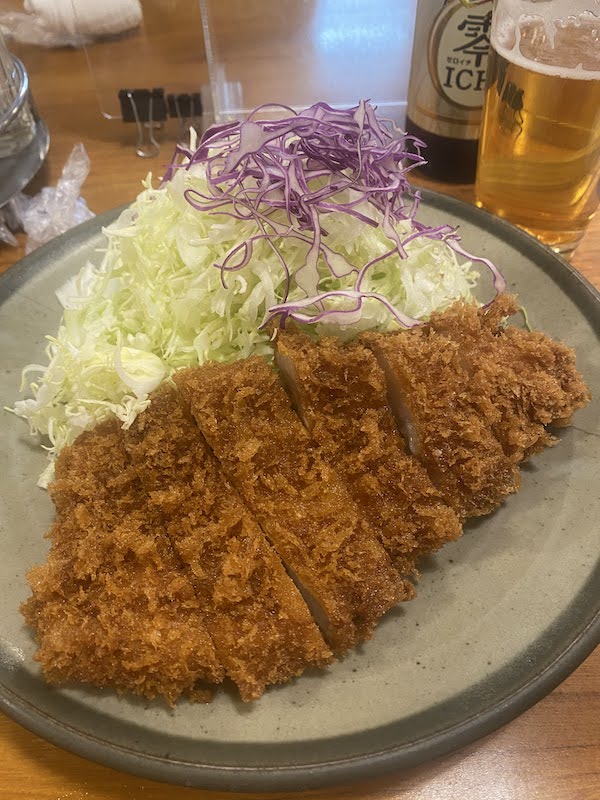 今日はもう一品皆さんでシェアするので定番の特ロースではなく普通のロースカツで脂祭りスタートであります。