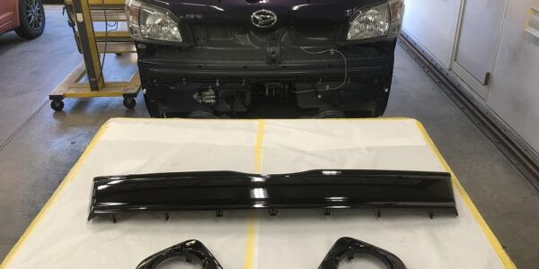 ハイゼットフロント周りペイント 2020年8月22日 ダイハツハイゼットフロント周りのオプションパネルをペイントしました。 新車時にメッキの使用に変更したのですが、あまりにも派手すぎるのでコントラストを下げた色にペイントしました。 大分落ち着いた感じに仕上がりました。