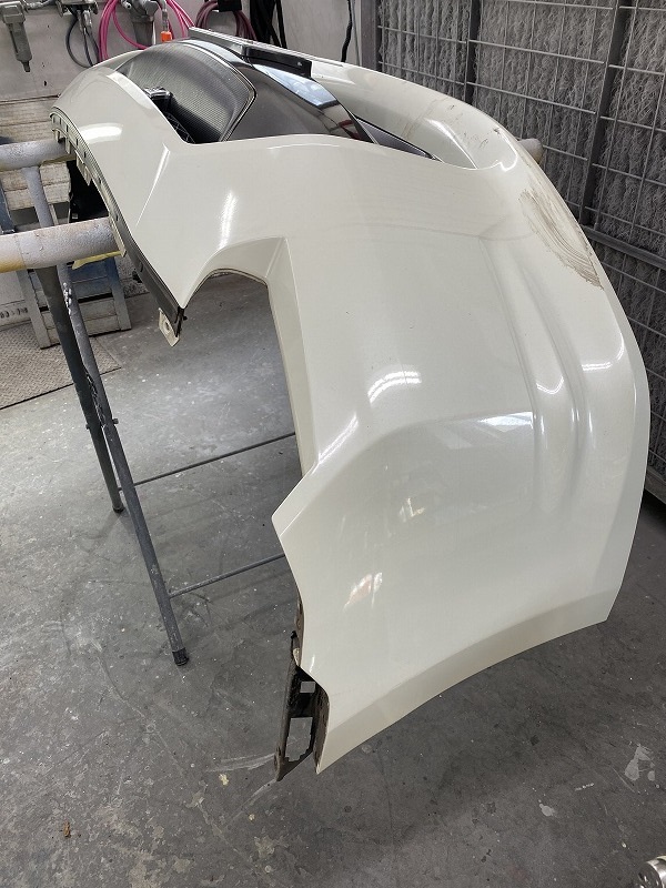 今回はパテをほとんど使わない極限までたたき出して修理し、バンパーも若干歪んでおりましたので熱処理&ペイントにて修復させて頂きました。
