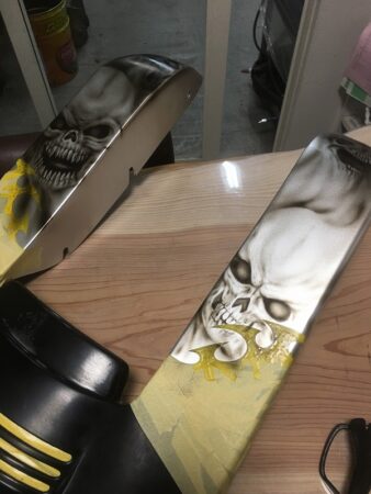 HARLEY DAVIDSON バガーエクステンションペイント。 2020年4月23日 ハーレーダヴィッドソンバガーフェンダーエクステンションにアートペイントをさせて頂きました。 アメリカ国内でペイントされたデザインをエアブラシにて全く同じにペイントしてあります。 トップコートはハウスオブカラーのキャンディーレッドをオーバーレイしてあります。