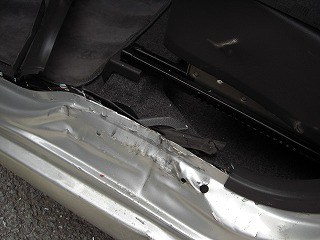 ロッカーパネルをかえしシートレールまで歪みが及んでおりました。