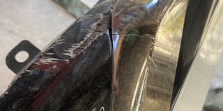 廃盤パーツの修理をしております。 例によってメッキモールもアウト。 …