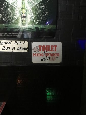 「トイレは客だけっ」て、、、で極めつけ、「飲まねぇヤツは出て行け!」(笑