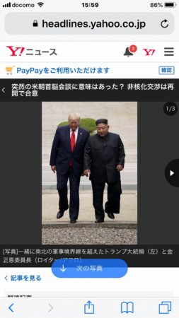 しかし今回の電撃会談は韓国大統領の人気取りとアメリカの大統領の選挙アピールが見事に合致して実現した会談の様で、まぁ、中身はそんなにたいした事はないなと思えるのも事実です。