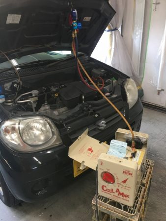 この暑い中ようやく漏れ箇所が判明しました。簡単なトコで良かった、、、、さっそく真空引きガスチャージ。