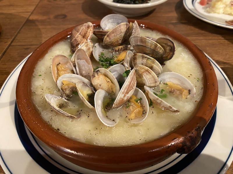 要はアサリのリゾットなんですが、バスク地方でアサリのパエリアを頼むとこういうふうになるんですね、、、まー、あっさり(シャレじゃないです w)しているのに味が深いこと、、、これも参る、、、