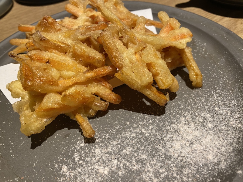 何が来たかと思ったらおでん大根のフリットです。不思議な美味しさ。こちらも高評価。