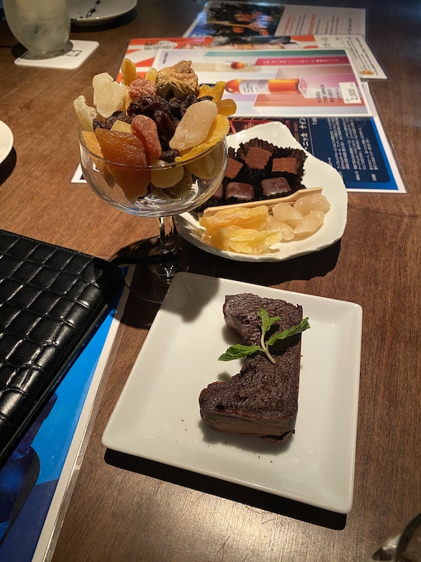 ウィスキーのお供は大体こんなんなりますね。ドライフルーツがめちゃ美味しくてですね、毎日この量食べたら確実に病気になりますってくらい甘い。