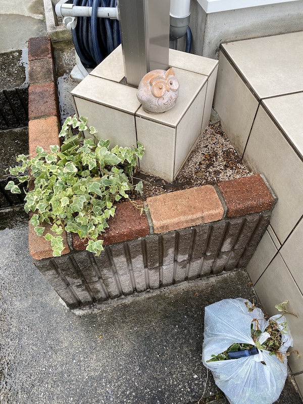 ポストに植えたアイビーが今年の暑さで枯れて半分戦死してもうた件(涙