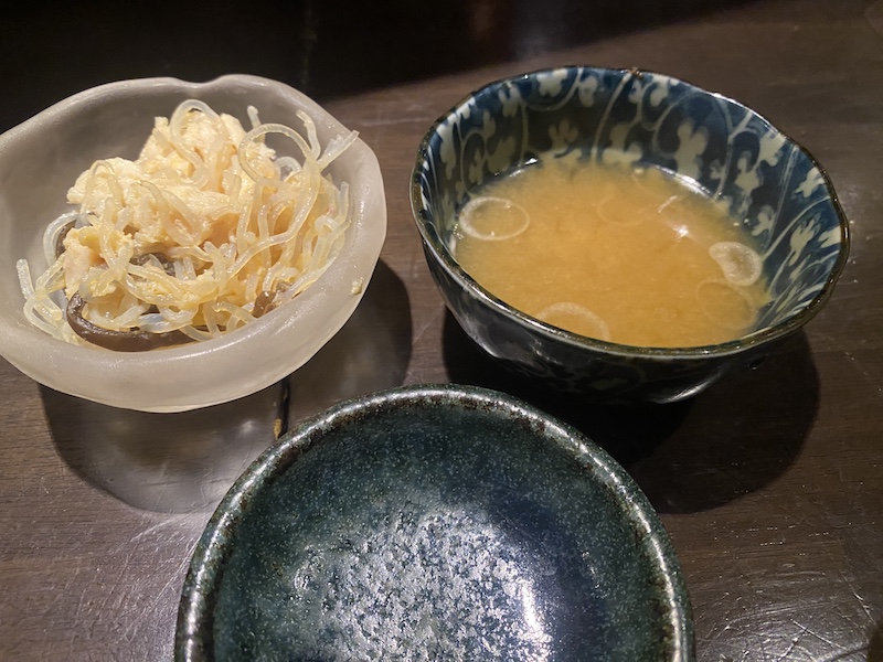 ワイ等酒飲みはウレシイお通し。最近は外国人にも理解が得られてきているお通し文化ですけど味噌スープが出て来たらなんと思うかな?