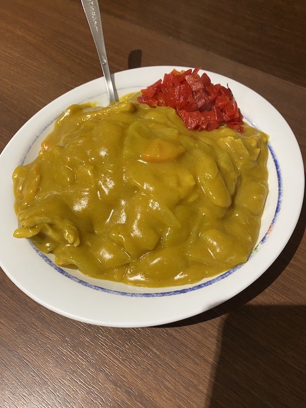 なんの変哲もない昔風のカレー。出されても「?」マークしか浮かばないカレー、、、一回食べると人気が出るのが良く解ります。