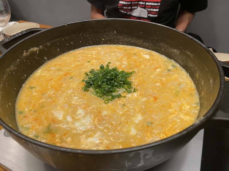 後の締めにとっておいてと言う意味。九州の新三浦の水炊きを彷彿するなと、、、。