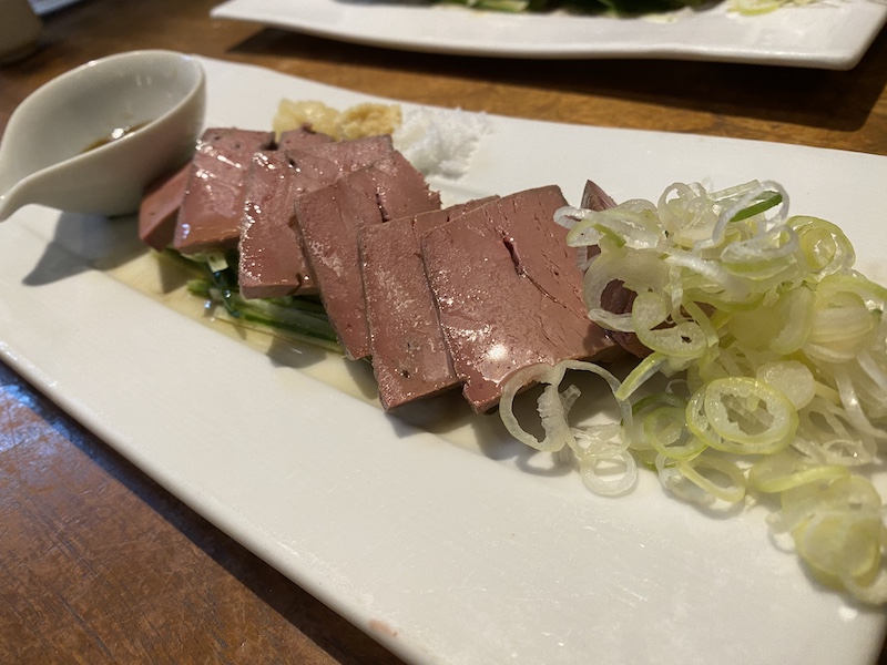 今日のナンバーワンアワード! 低音調理したレバー蒸し。刺しでもない完全に火が通ってるでもない、今や法律ギリギリのレバーです。