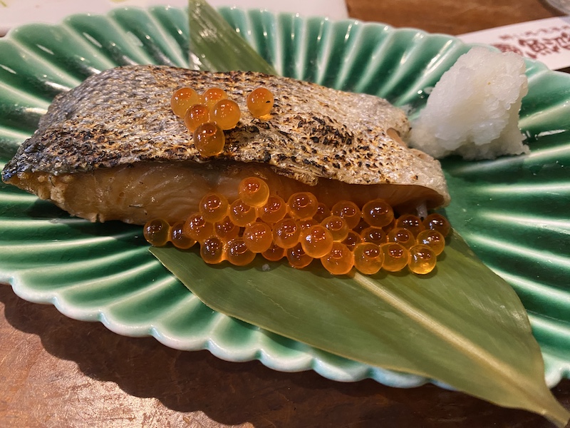 酒のアテ(肴)のつもりで頼んだ鮭とイクラ。ご飯を召集したくなります。