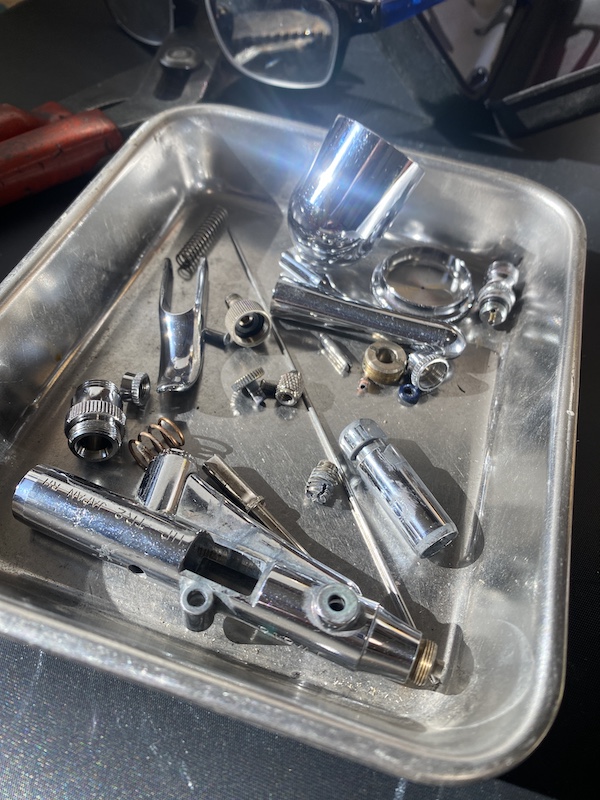 と言う事で、上記修理に使うので去年散々使い倒したIWATAの0.5ミリをフルバラシをしましてオーバーホールしてます。