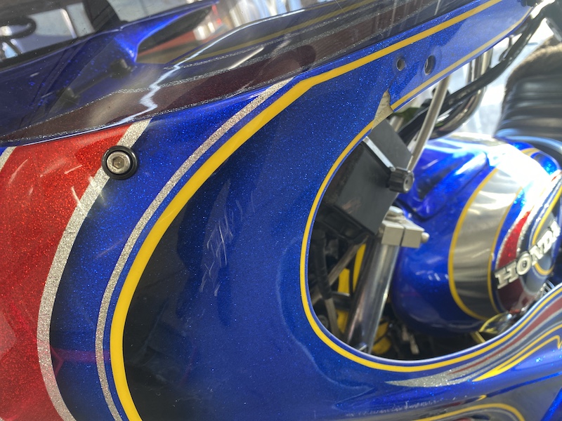 新春の初仕事は去年ペイントさせてもらったヤカン(HAWK2のタンク 念の為)のカウルを補修しました。