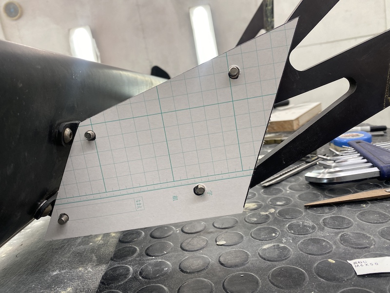 なんせオマケに着いていたステーは細いステー2本並べて延長するタイプでスタイリングがイマイチですからワンオフでブラケットを造って行きます。