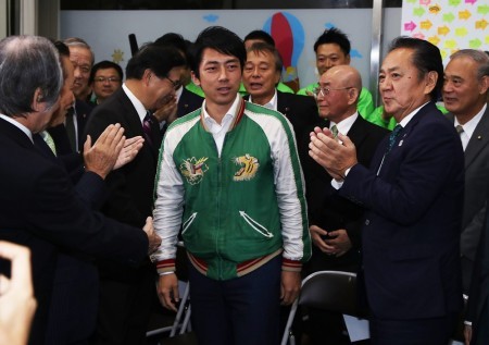 そのスカジャンの色はナント対抗馬の緑色であります。これはニュースでは取り上げられていません。