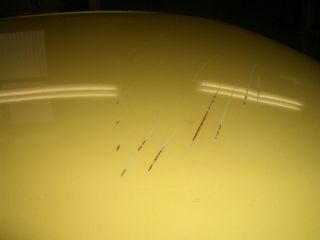 別のアングル。 今回のように、傷のような、うっすらとしたヘコミのような損傷は、気を抜くと塗りあがり後にばっちり分ってしまいます。 |