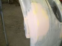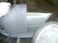このサフェーサー、一回硬化したらもう最後、がっちがちになって、元のウレタンみたいになるんです。 |