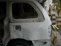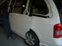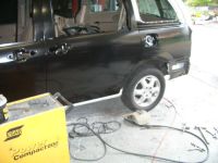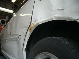 ドア、クォーターとけっこうな凹み。 F&Rドア、クォーターは取替えとさせていただきました。