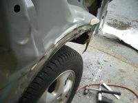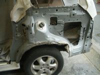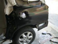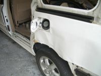 インナーも歪んでいる様子。 修理後にクォーター貼り付けにうつります。 |