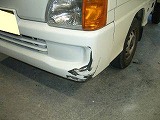 ここまで直るバンパー修理。 軽トラのフロントバンパー。 「切れ」、「スリ」、「割れ」色いろなダメージが複合したバンパー修理。 ![]() |