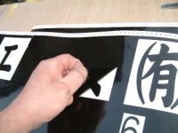 ヘラで良くしごいてから、文字が完璧に張り付いているのを確認。 |
